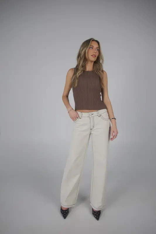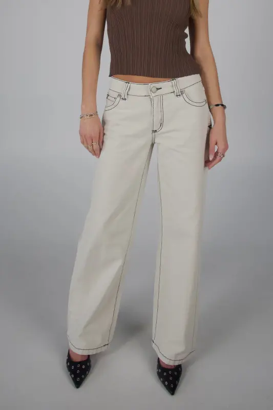 Cool, relaxed, and perfectly on trend — the 99 Baggy Chelsea by Abrand is the ultimate pair of effortless fall denim. Designed in a soft beige wash with subtle contrast green stitching, these jeans add a fresh twist to your everyday denim. The low-rise fit and straight leg silhouette create that laid-back ‘90s-inspired vibe, while the relaxed fit keeps them comfortable and easy to style. With a classic zip fly and button closure, plus five-pocket styling, the 99 Baggy Chelsea jeans are a must-have for fall.