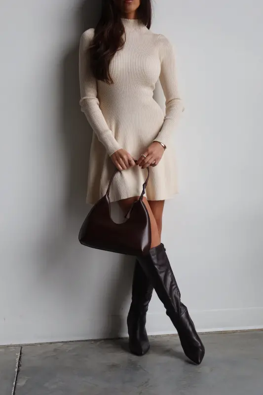 Make a statement in our Aria Mock Neck Fit & Flare Dress, where sophistication meets comfort. Crafted from premium ribbed fabric, this mini dress features a flattering mock neckline that adds a touch of elegance to your look. The long sleeves provide perfect coverage, while the fit and flare silhouette creates a gorgeous feminine shape that flatters every figure. The ribbed texture adds visual interest and ensures a comfortable, body-hugging fit through the bodice before gracefully flaring out into a playful mini length. Perfect for date nights, special occasions, or whenever you want to feel effortlessly polished.