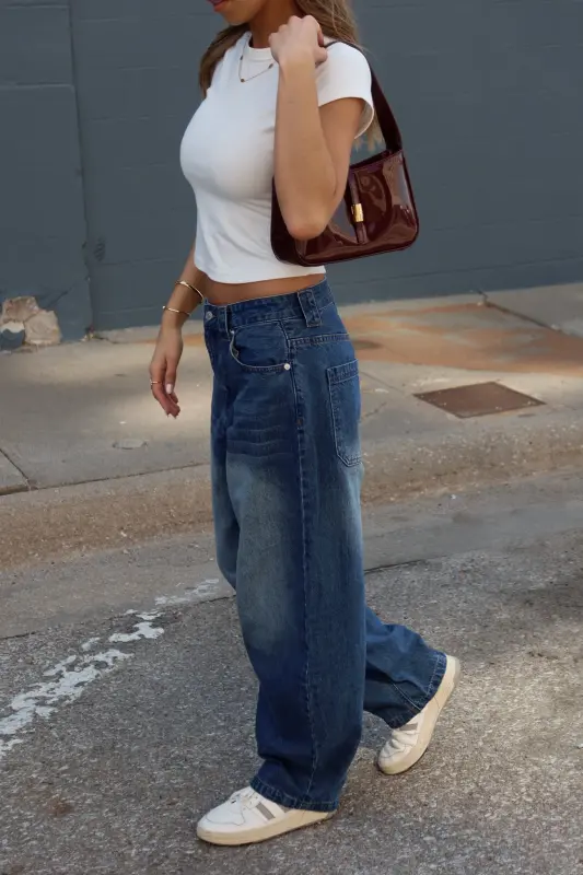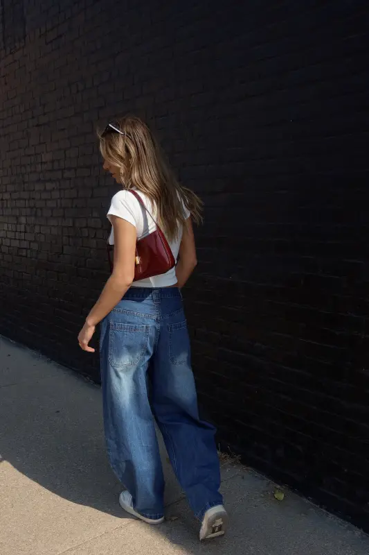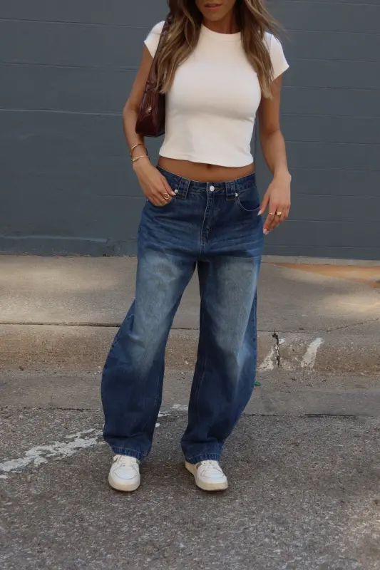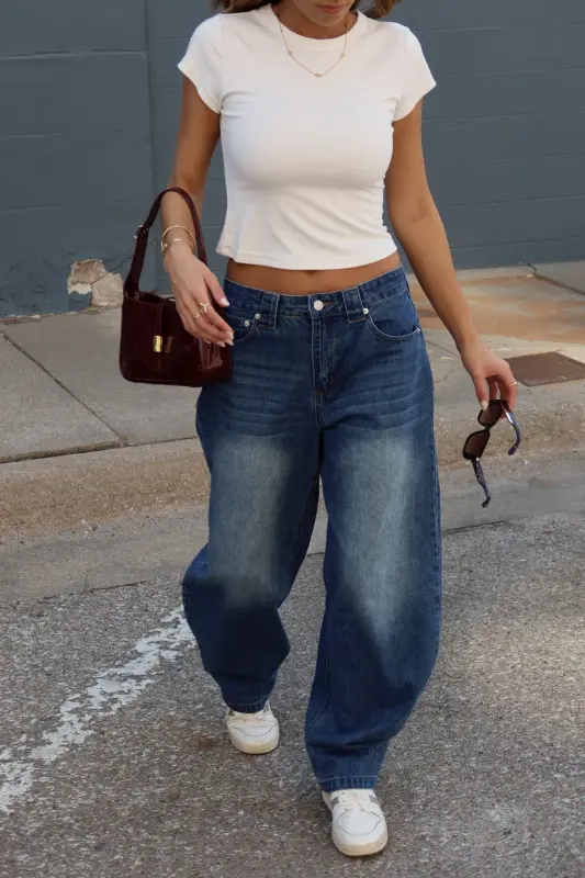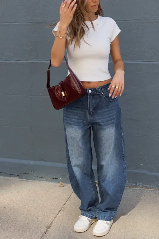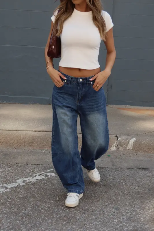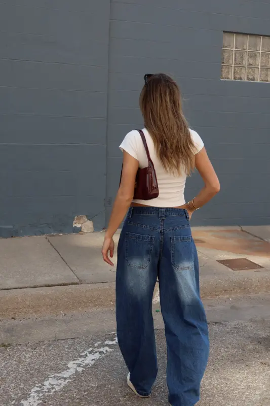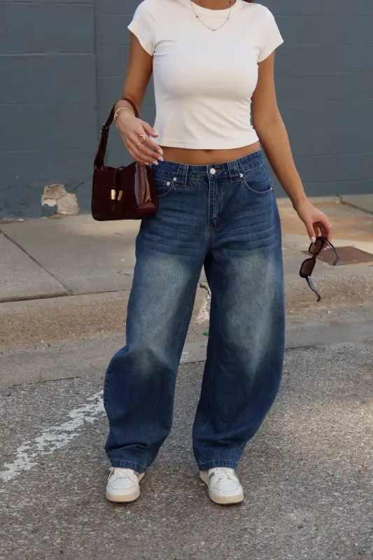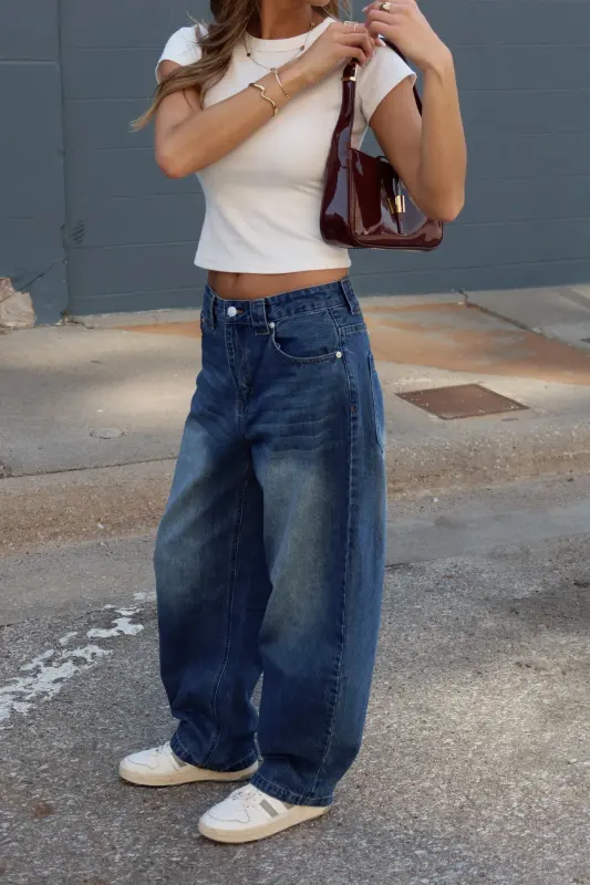 The low rise fit accentuates your waist while the barrel leg silhouette provides a relaxed yet chic look. Featuring classic five-pocket styling and subtle fading details, these jeans effortlessly blend vintage charm with contemporary flair. Pair them with your favorite oversized sweater or a fitted tee for a versatile ensemble that transitions seamlessly from day to night.