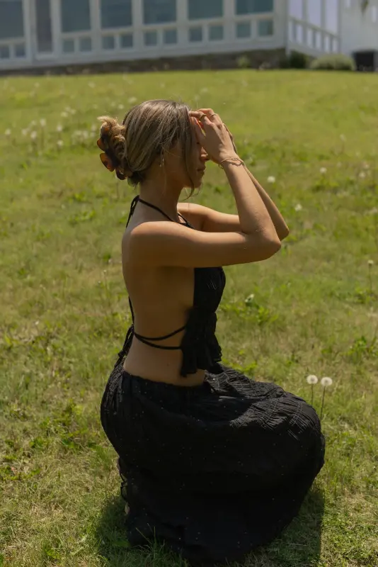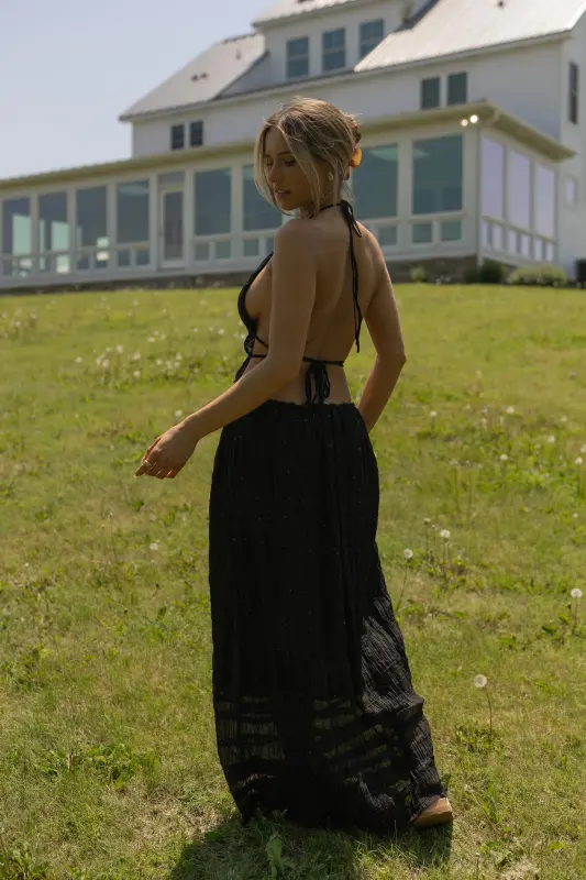 The Monika Maxi Skirt Set ensemble is a stylish and alluring set that exudes modern sophistication and charm. The halter neck top features intricate smocking detail, adding a touch of texture and interest to the look. With a backless design, it offers a hint of allure and elegance. Paired with the mid-waist maxi skirt, this set creates a cohesive and chic outfit perfect for various occasions. The combination of smocking, halter neck, and a flowing maxi skirt exudes a contemporary yet timeless appeal, making it a versatile and standout choice for those seeking a fashionable and elegant ensemble.