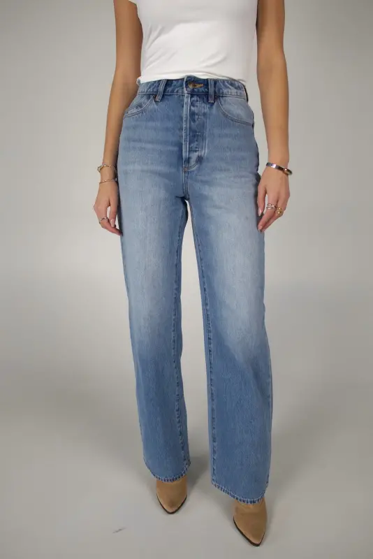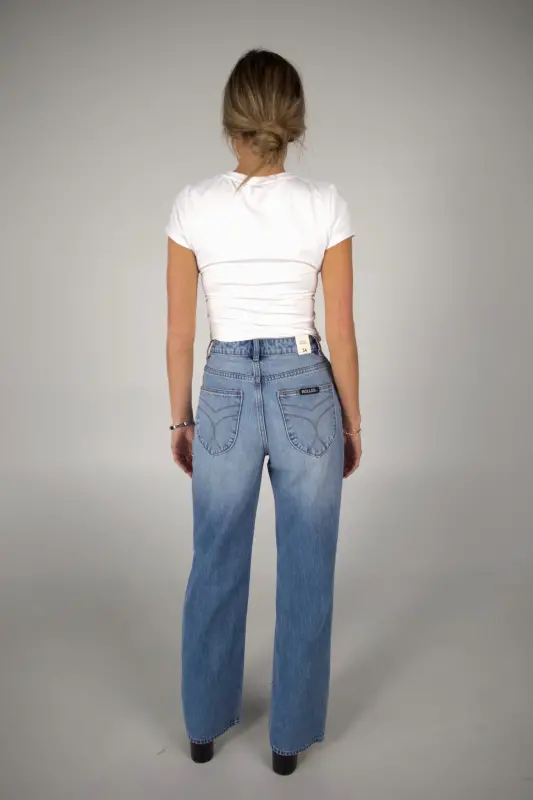 The Stevie Relaxed Jean, by Rollas, features a high rise, relaxed fit through the seat and thigh, and a straight leg for that effortless vintage feel. Finished with Rolla’s signature back pocket stitching and silver hardware, this style is crafted in Brad Blue — a mid-vintage wash with a soft, worn-in look.