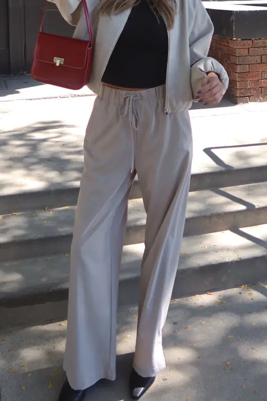 Upgrade your wardrobe with our Wide Leg Elastic Waist Tailored Pants, the perfect blend of elegance and comfort. Featuring a sleek tailored design with a relaxed wide-leg cut, these pants offer a sophisticated look for any occasion. The elastic waistband and self-tie detail ensures a comfortable fit without compromising style, making them ideal for work, casual outings, or evening events. Versatile and effortlessly chic, these pants are a must-have addition to any modern woman’s fashion collection. Pair them with a blouse or casual top for a polished yet laid-back ensemble.