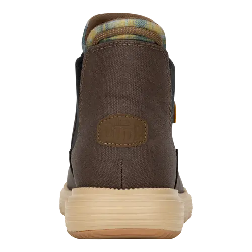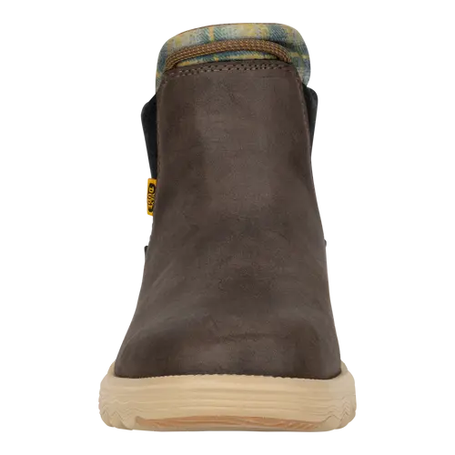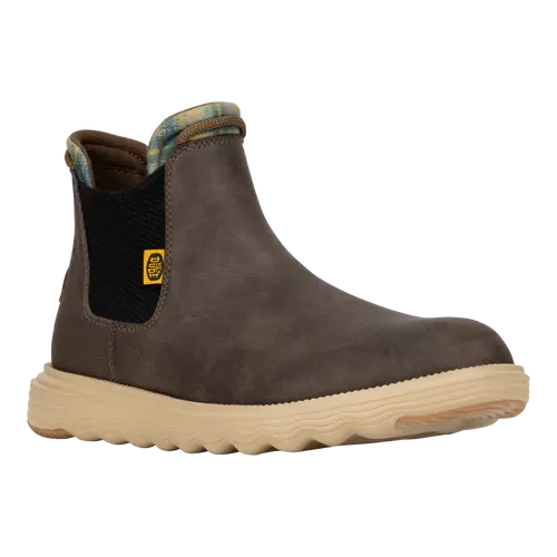 A classy boot for a classy dude. Branson Classic is in it to win it this season with a faux leather water repellent upper, lightweight flex outsole and rubber pods for added traction. Slip into classic HEYDUDE™ comfort and style.