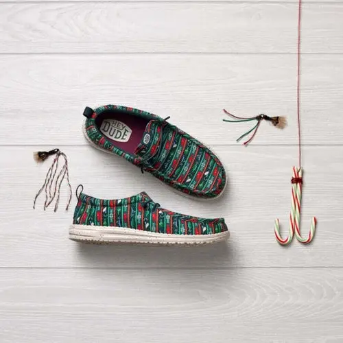 This one just might be the catch of the season. Made with a canvas upper with stretch laces and the famous HEYDUDE™ easy-on design, it features a festive fish-hook print that's sure to lure you in. The lightweight, flexible sole makes feet feel like boats floating on a pillowy sea.