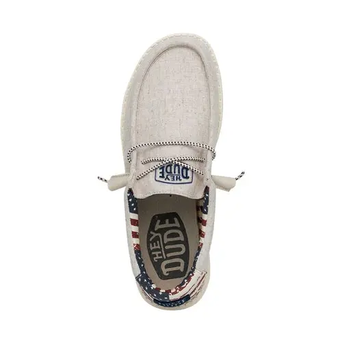 Let freedom ring. The Wally Patriotic is your all-American go-to. The cotton-canvas upper is breathable, durable and BBQ-ready. The foam insole is for do-everything, warm-weather seasons. And the flexible, lightweight outsole adds just another HEYDUDE™ feature you love. A stars-and-stripes style that’s made for summer days.