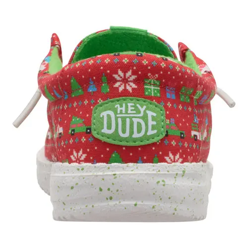 The holiday season means trees, toys and ugly sweaters. These Wally shoes bring the festivities for big kids who like to kick it holiday style. They have a holiday-themed printed Textile upper with a wide collar and elastic laces that don't need to be tied. The best part is they double as stockings when filled with candy and small gifts.