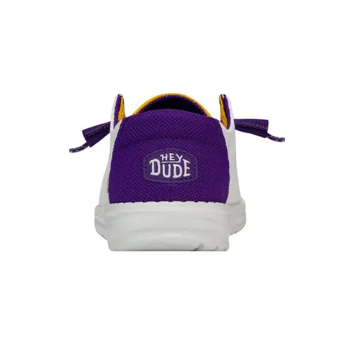 The Women's Wendy now screams school spirit! Show your support for the LSU Tigers in style with a unique design featuring the bold team colors. Made with signature HEYDUDE comfort, lightweight materials, and a slip-on design, these are perfect for all-day wear to bring you and your crew from the tailgate to the game.